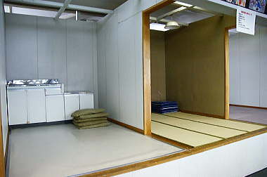 | 過去の大地震の揺れを体験出来るのが、この地震体験のブース。未体験ですが、この部屋のモデルがグラグラと激しく揺れて恐ろしくリアルらしい。 |