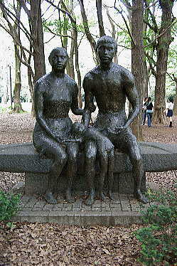 | 広場の真ん中に若い家族の像があります。これはしあわせの像と言って、放送事業の発展に寄与した功労者を称えるために、昭和46年に作成されたものだとか。 |